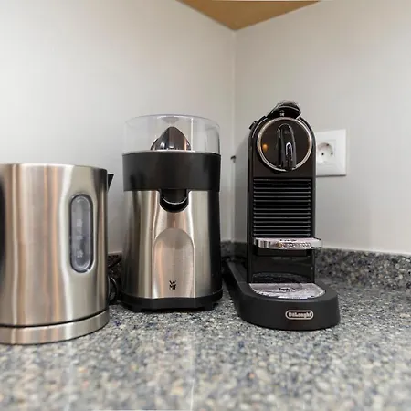Tak, ten apartament wyposażony jest w pełnowymiarową kuchnię z czajnikami elektrycznymi, lodówką i piekarnikiem.